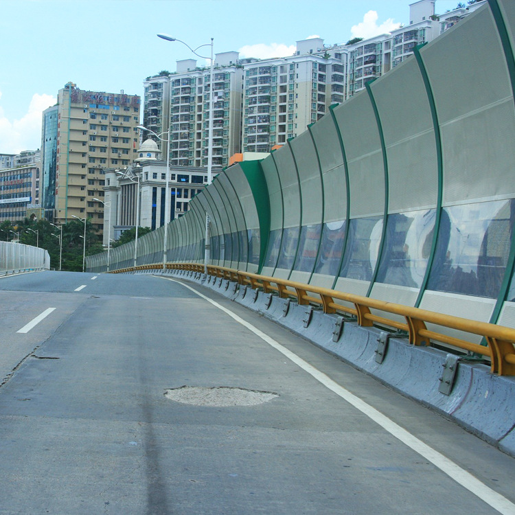 1. 弧形声屏障的设计可以降低风阻。在高速公路等环境中,风的作用会引起声屏障的振动,从而产生噪声。弧形的形状可以使风更加顺畅地流过声屏障,减少风对声屏障的作用力,降低振动噪声的产生。